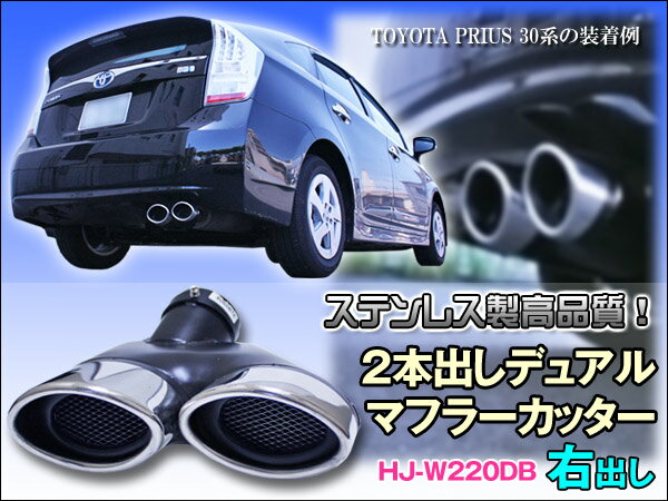 マフラーカッター 2本出し オーバル プリウス前期 後期 にも 2本出し ベンツ風オーバル デュアル マフラーカッター HJ-W220DB 網付右出し prv so