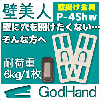 ★ネコポス200円★壁穴が目立たない★壁掛けフック!賃貸・新築の壁におススメ壁美人【P-4Shw】【日本製】 【壁掛けフック金具2個パック・ホワイト仕様】【フック 金具 壁面収納 飾り棚 時計 ミラー 鏡 空間利用 壁美人金具!】【RCP】[ネコポス可]【あす楽対応】